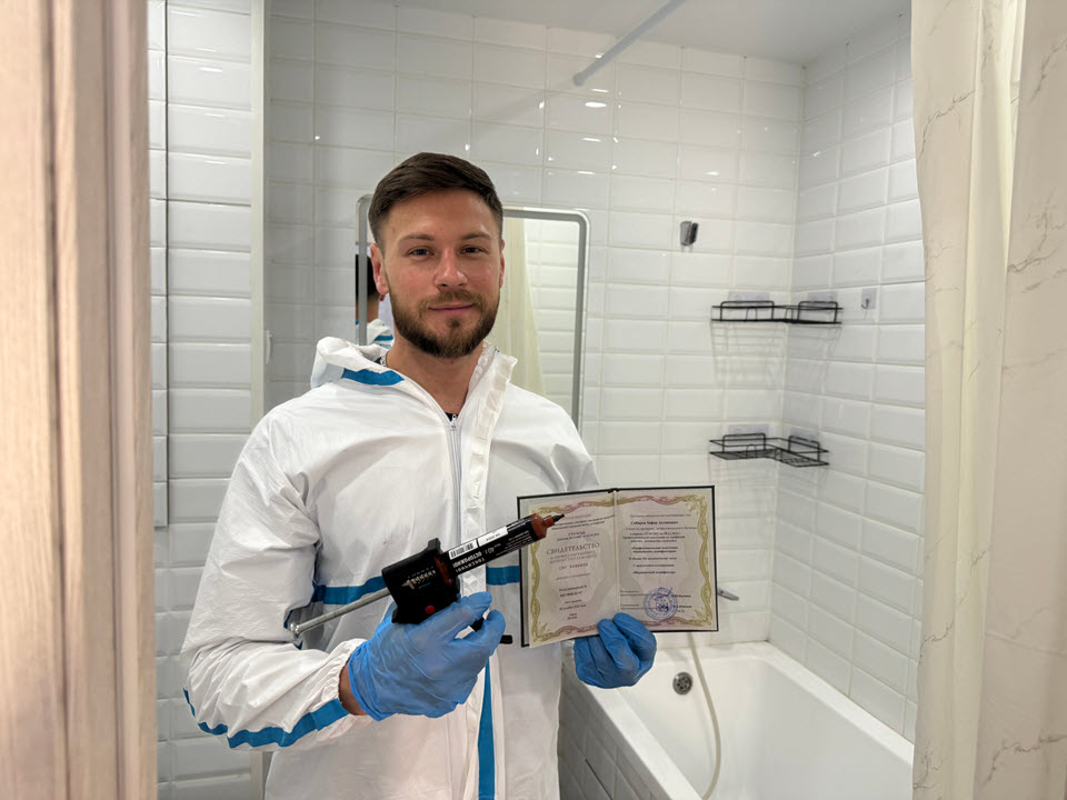 Специалисты работают в полном комплекте защитной экипировки, соблюдая все нормы безопасности. После обработки предоставляются рекомендации по дальнейшей эксплуатации помещения.